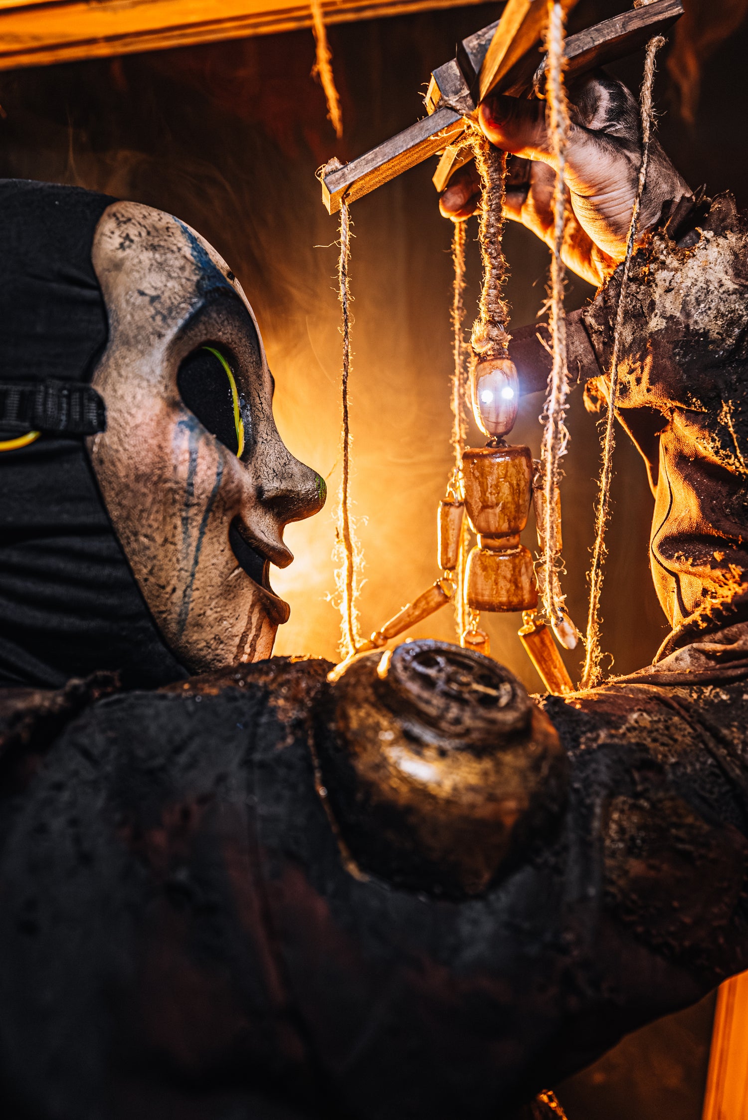 CUSTOM MODELED "WOODEN DOLLS" MASE OF HIGH STRENGTH HIGH TEMP PLASTIC, COMPLETE WITH LED EYES TO COMPLETE THE HAUNTED EFFECT
