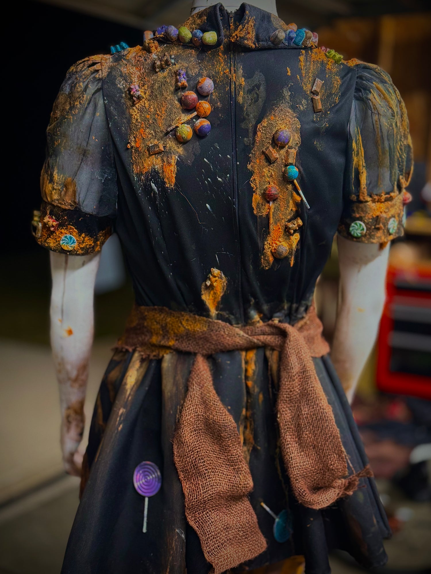 A HORROR DOLLMAKER COSTUME SET COMPLETE WITH GEAR JOINTS, CUSTOM BUTTONS, AND KEYHOLE SPINE